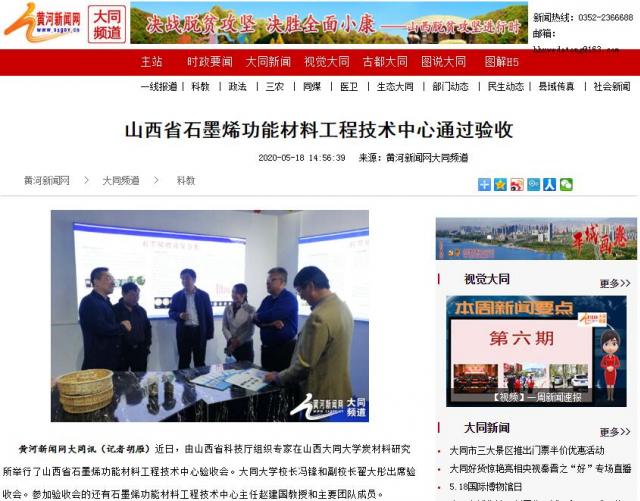 黃河新聞網大同訊(記者胡雁)近日,由山西省科技廳組織專家在山西大同大學炭材料研究所舉行了山西省石墨烯功能材料工程技術中心驗收會。大同大學校長馮鋒和副校長翟大彤出席驗收會。參加驗收會的還有石墨烯功能材料工程技術中心主任趙建國教授和主要團隊成員。